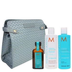 Лимитированный праздничный набор Moroccanoil Hydrating для глубокого увлажнения и восстановления сухих волос. Набор объединяет три культовых продукта для комплексного ухода за обезвоженными волосами всех типов. В состав входят полноразмерные средства: увлажняющий шампунь 250 мл, увлажняющий кондиционер 250 мл и восстанавливающее масло Moroccanoil Treatment Original 50 мл. Все продукты упакованы в стильную фирменную косметичку, что делает набор идеальным решением для полноценного домашнего ухода, подарка или путешествий. Набор разработан для волос, подвергшихся химическим воздействиям и горячей укладке. Формулы не содержат сульфатов, фосфатов и парабенов, что предотвращает вымывание пигмента из окрашенных волос. Использование трех продуктов в системе обеспечивает максимальный эффект: шампунь мягко очищает, не нарушая липидный слой, кондиционер насыщает влагой и разглаживает кутикулу, масло запечатывает влагу, обеспечивает термозащиту и придает зеркальный блеск увеличенный на 118%. Волосы становятся эластичными и послушными, исчезает ломкость и тусклость.