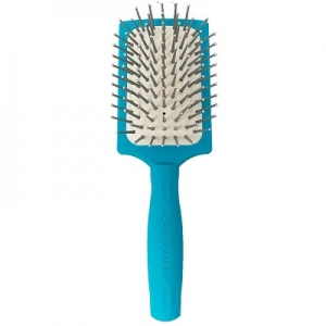 Moroccanoil Щетка Лопатка Мини Ceramic+ION Brush C Ионная щетка Лопатка обладает безопасным керамическим основанием с нейлоновой щетиной и функцией ионизации, для поддержания здорового состояния волос и сохранения их целостности от механических повреждений. Moroccanoil расческа изготовлена из высокотехнологичных и высококачественных материалов. Ионы, которые передают щетинки, препятствует испарению влаги из волос, разглаживает отслоившиеся чешуйки кутикул, волосы приобретают больший объем, силу, здоровье и блеск. Время высыхания волос сокращается благодаря керамической основе щетки, которая лучше аккумулирует тепло и излучает его в более широком спектре частот, позволяя сгладить перепады температурных режимов во время сушки феном. Прочная конструкция щетки увеличивает срок ее службы в два раза. В ручке находится вывинчивающееся приспособление для удобного разделения пропоров.